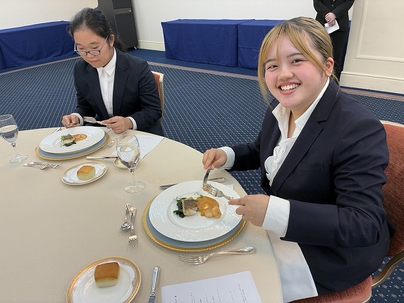 KBCCでは、ホテルの豪華コース料理をいただきながら、社会人として身につけたいマナーをしっかり学べる「テーブルマナー実習」があるんです✨