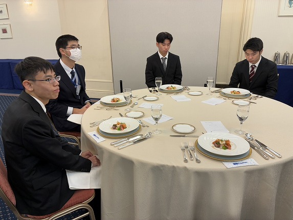 学生たちは、本格的なコース料理をいただきながら、SHIROYAMA HOTEL kagoshimaの講師の先生から、ナプキンの使い方、カトラリーの扱い方、食事中の姿勢や所作など、社会人として知っておくべきマナーについて丁寧に学びました🍴✨