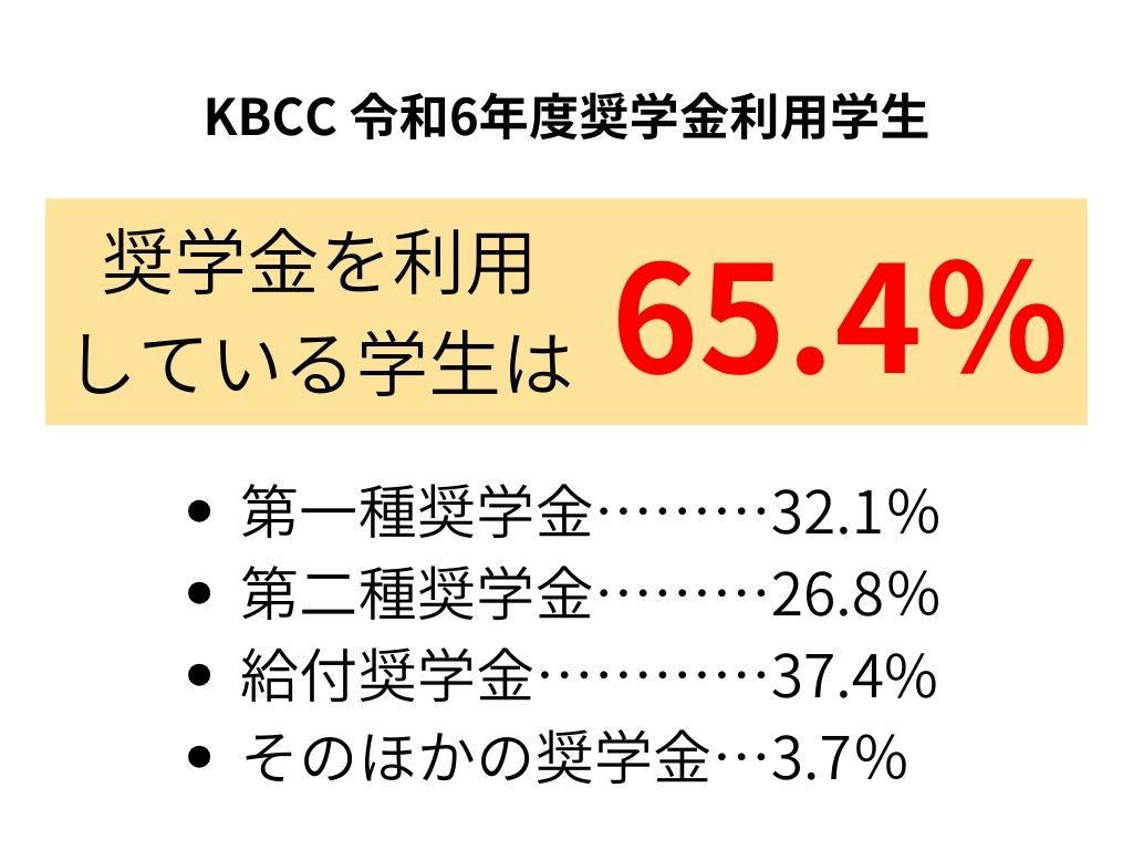 KBCCでは、65.4%の学生が奨学金を利用しながら通っています。